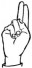 На ћирилици написано БЛАЖА ВУКОЈИЧИЋ састоји се из 14 слова [?]. Исписано ћириличном једноручном азбуком за глувонеме: